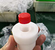 抗原檢測試劑瓶放置于等理瓶器中,通過理瓶器理入等分盤中,等分盤作二十四等分的間歇運(yùn)動,先在灌裝工位上由陶瓷泵灌裝,每瓶分一次灌裝;完成液體灌裝的瓶子運(yùn)動至戴蓋工位時,自動戴上蓋子,再運(yùn)動至旋蓋工位時,旋蓋頭下降,將蓋子旋緊在瓶子上。