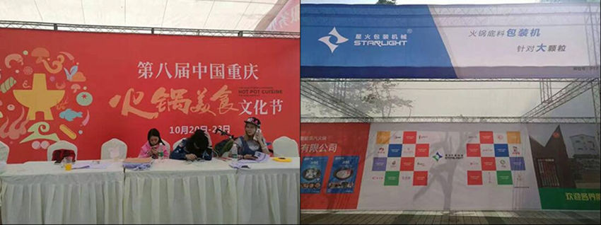 由重慶市商業(yè)委員會(huì)和重慶市江北區(qū)人民政府主辦,重慶市火鍋協(xié)會(huì)和重慶市江北區(qū)商務(wù)局承辦的第八屆中國(guó)(重慶)火鍋美食文化節(jié)于2016年10月20日-23日在重慶市江北區(qū)金源時(shí)代購物廣場(chǎng)隆重舉辦。 此次展會(huì)以“麻辣Happy,城市節(jié)日”作為主題,擁有50000平方米的展示面積,匯集5000家貿(mào)易商、500家參展商、1000余家火鍋企業(yè)、50余個(gè)全國(guó)火鍋行業(yè)協(xié)會(huì)代表團(tuán)參與,將吸引30萬人次到場(chǎng)參觀,可謂是“史上很大規(guī)模的國(guó)內(nèi)火鍋行業(yè)盛會(huì)”。 此次展會(huì)范圍: 火鍋企業(yè):火鍋餐具、用具等火鍋器皿,火鍋底料、醬料等火鍋延伸產(chǎn)品,火鍋食品、調(diào)味品等火鍋原輔材料。 酒水飲料:裝修、餐飲品牌策劃等形象包裝及推廣。 銀行產(chǎn)品、理財(cái)產(chǎn)品 烹飪學(xué)院、電子商務(wù)、餐飲電子應(yīng)用技術(shù)、火鍋食品包裝技術(shù)及設(shè)備、物流、配送中心等火鍋產(chǎn)業(yè)鏈相關(guān)企業(yè) 星火機(jī)械此次也很榮幸的受到邀請(qǐng),參與此次展會(huì)。星火此次展會(huì)帶來了火鍋底料包裝機(jī)、火鍋底料灌裝機(jī)、醬料包裝機(jī),醬料灌裝機(jī)等與火鍋包裝有關(guān)的高端設(shè)備,歡迎廣大參觀者到現(xiàn)場(chǎng)咨詢: