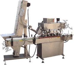 原理及特點(diǎn):高速直線式自動(dòng)上料單頭旋蓋機(jī)是由我公司很近改進(jìn)的一種新型旋蓋機(jī)。該機(jī)外形美觀大方、靈巧、旋蓋速度快,合格率高、適用于食品、制藥、日化、農(nóng)藥、化妝品等行業(yè)的不同瓶形的旋蓋。 該機(jī)種設(shè)計(jì)新穎Du到、機(jī)械扭矩控制智能化,并且操作與調(diào)節(jié)十分便利,操作人員只需將瓶蓋置于瓶口上,瓶子在向前運(yùn)行的過程中,瓶蓋被三組搓蓋輪自動(dòng)擰緊。既可用于單機(jī)生產(chǎn),更是連線生產(chǎn)的理想機(jī)型?煞奖愕厣(jí)為完全的自動(dòng)旋蓋機(jī)ASP,我們有提升式、斜盤式、震蕩式等落蓋系統(tǒng),可根據(jù)實(shí)際需要選配。自動(dòng)旋蓋機(jī)主要適用于不同材質(zhì)的規(guī)格及不同規(guī)格的蓋、旋(軋)蓋。適用螺旋蓋、防盜蓋防童蓋、壓入蓋等。備有恒扭矩旋蓋頭,壓力可方便調(diào)整。結(jié)構(gòu)緊湊、合理,能方便與其它設(shè)備聯(lián)動(dòng)成線,防塵罩可選購。